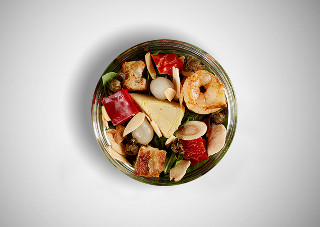 Sağlığın, lezzetin ve tazeliğin tüm renkleri yine Chef Alex’de! Akdeniz temalı bu tarifinde muskat ile lezzetlendirilmiş karides, enginar, kapari çiçekleri, gümüş soğan turşusu ve lezzetli zeytinli krutonlar başrolde. Şefimiz bu salataya özel hazırladığı sosu ile yine fark yaratıyor.
