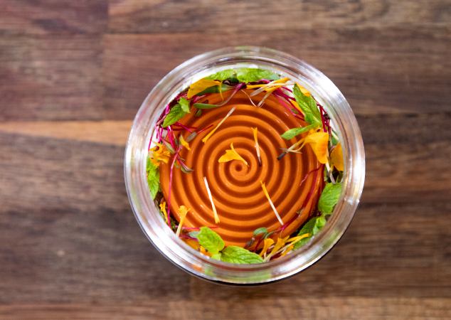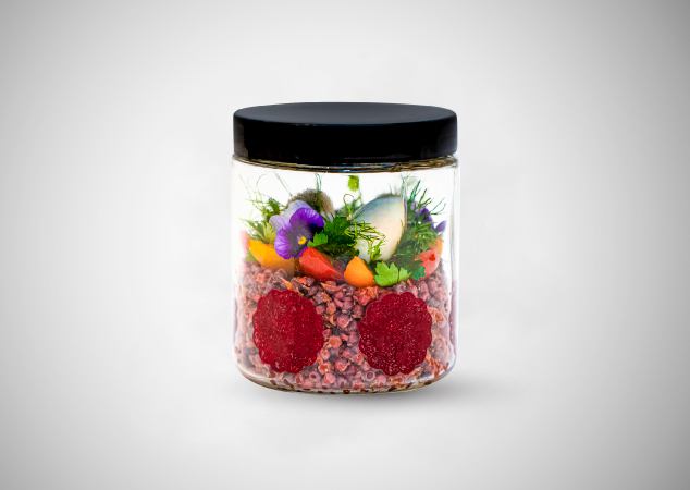 Mozarella kreması, taze nane ve amaranth filizleri kullandığı tarifinde İtalya’dan ilham alan Şef Bettini, bu karışımla damağınızda ferah bir aroma bırakıyor. Yer elması püresi ve pancar püresi katmanları ile kavanoza kusursuz bir dokunuş yapıyor. Çiroz balığı kullanarak taçlandırdığı Hypnosis, kapağını açtığınızda görsel şölen sunan bir sürprizle sizi karşılıyor.